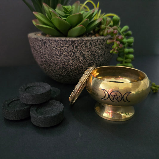 Brass Triple Moon Pentacle Charcoal Burner
