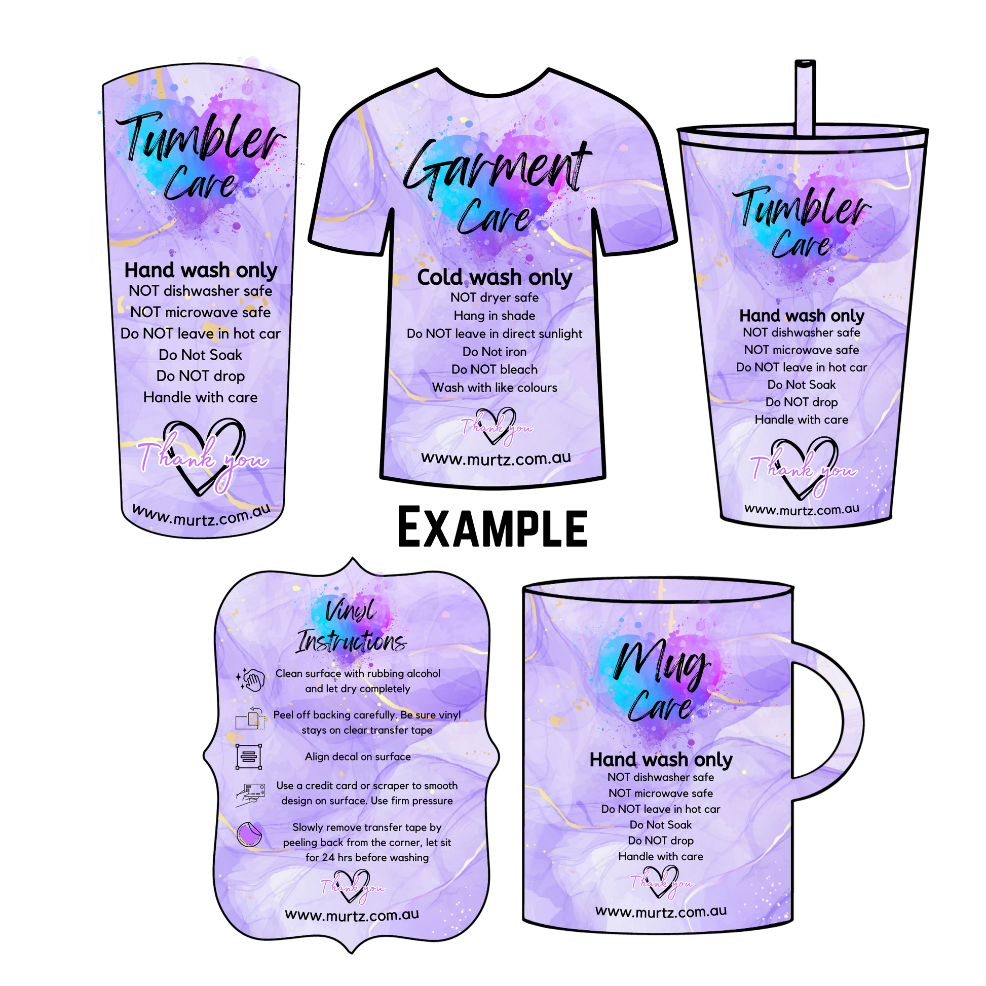 Show how to care for your items in a memorable way with our custom care cards!