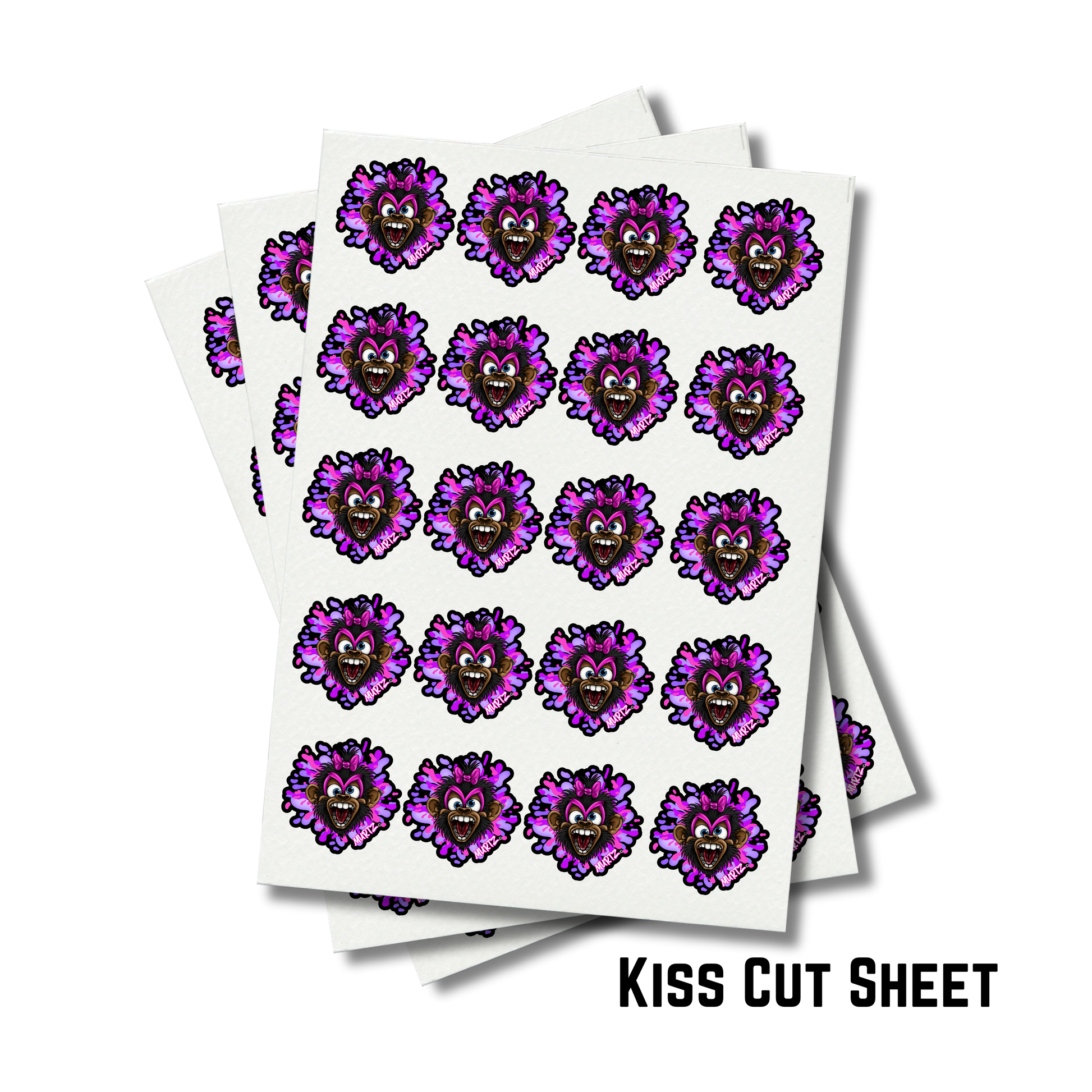 - Kiss-cut stickers only cut through the vinyl, leaving the stickers on the sheet backing.